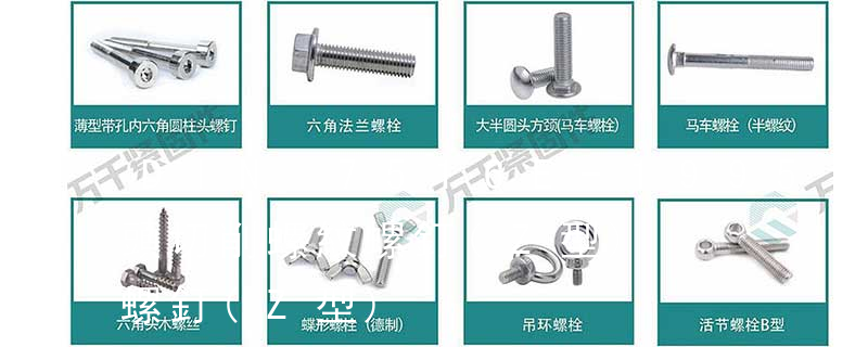 2、螺柱:沒有頭部的,僅有兩端均外帶螺紋的一類緊固件。屬于可拆卸連接。主要用于被連接零件之一厚度較大、要求結構緊湊,或因拆卸頻繁,不宜采用螺栓連接的場合。3、螺釘:也是由頭部和螺桿兩部分構成的一類緊固件,機器 螺栓有:1、方頭螺栓,2、半圓頭方頸螺栓,3、十字槽盤頭螺釘,4、內六角沉頭螺釘,5、方螺母C級,6、蝶形螺母,7、六角頭螺栓,8、十字槽盤頭自攻螺釘。大小有M18、M6、M8、M16、M10、M12、M14、M20等型號。通常用